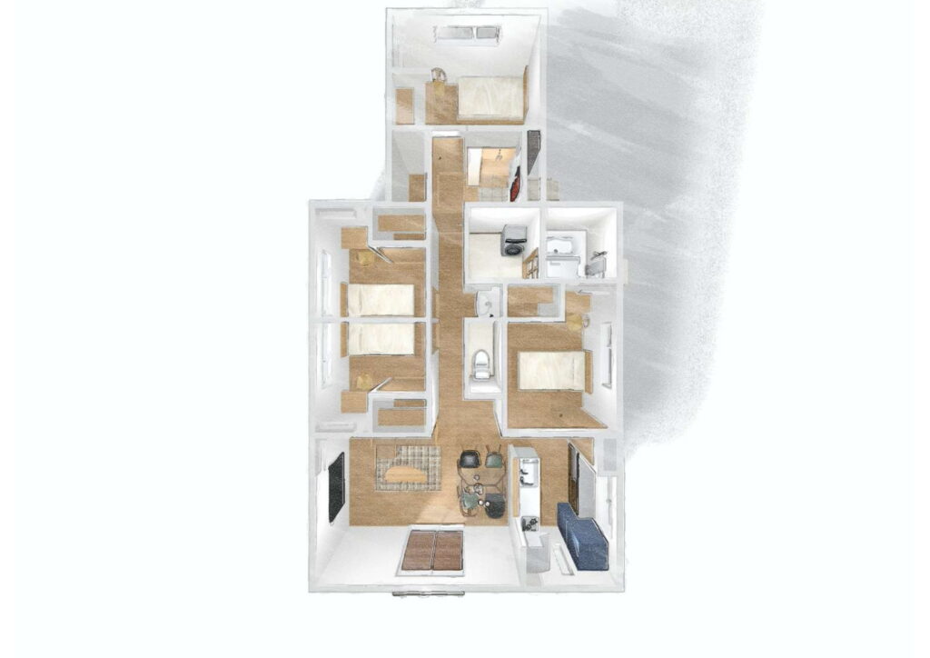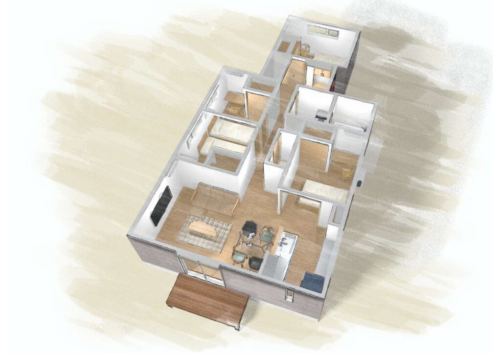 2階建ての場合、3部屋を2階へと上げると階段と廊下のスペース分が大きくなりますね