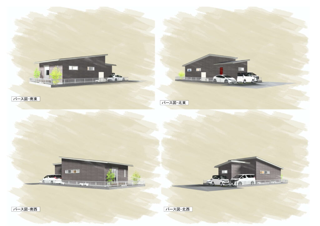 外観デザインもシンプルな片流れ屋根の組合せにしています。