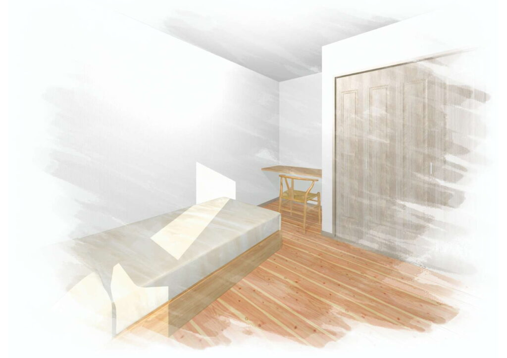 玄関ホールから左に配置した洋室