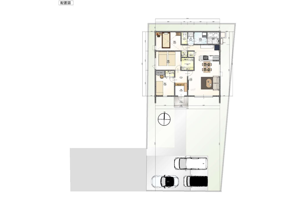 全体の建物配置です。大型の犬小屋も建てるスペース余裕。