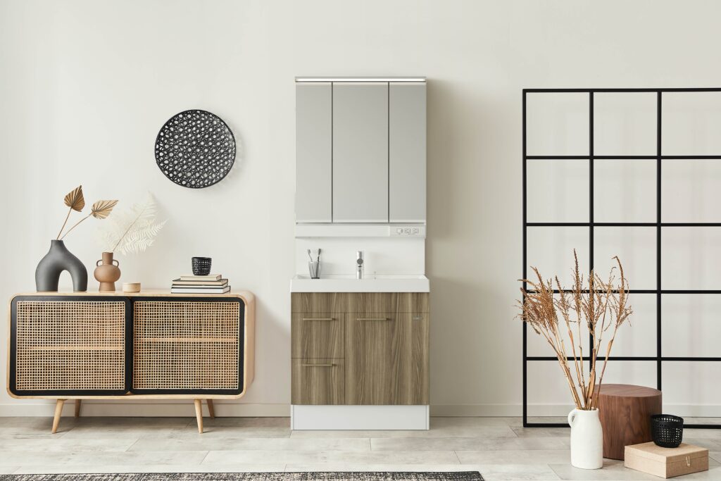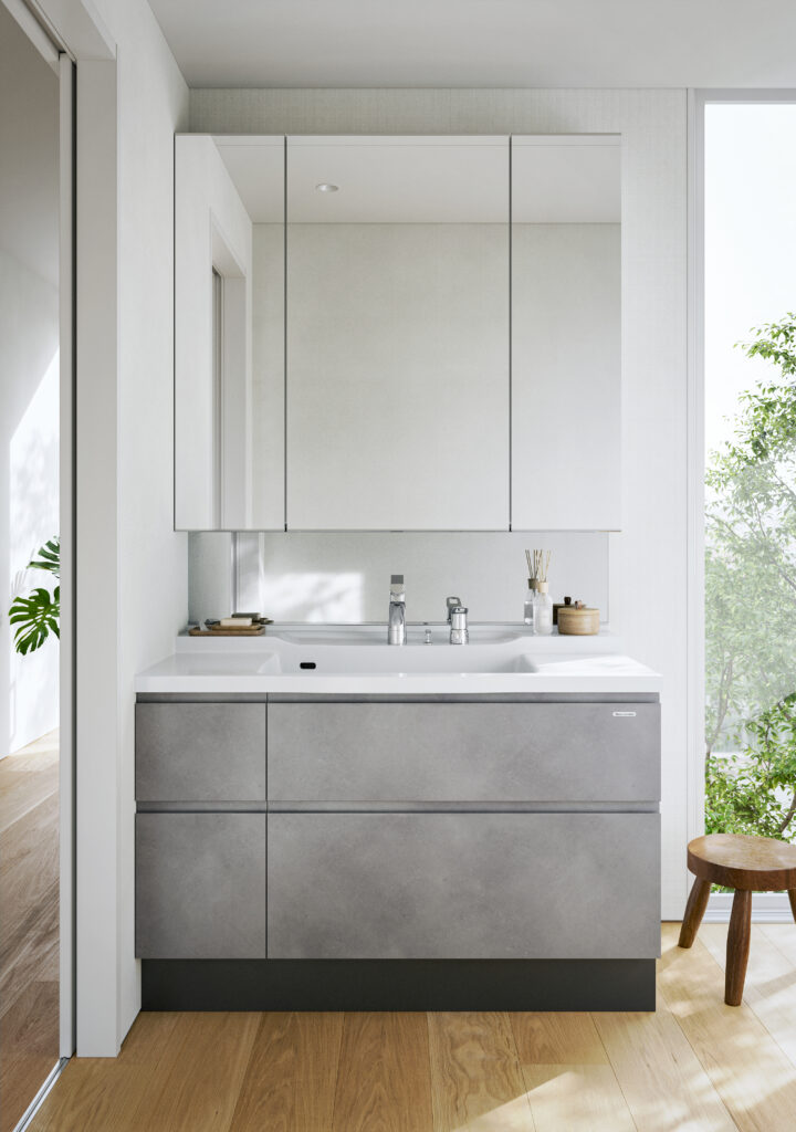 さて、洗面化粧台ですが幅75㎝が標準ですが、幅広に変更される方が多いです