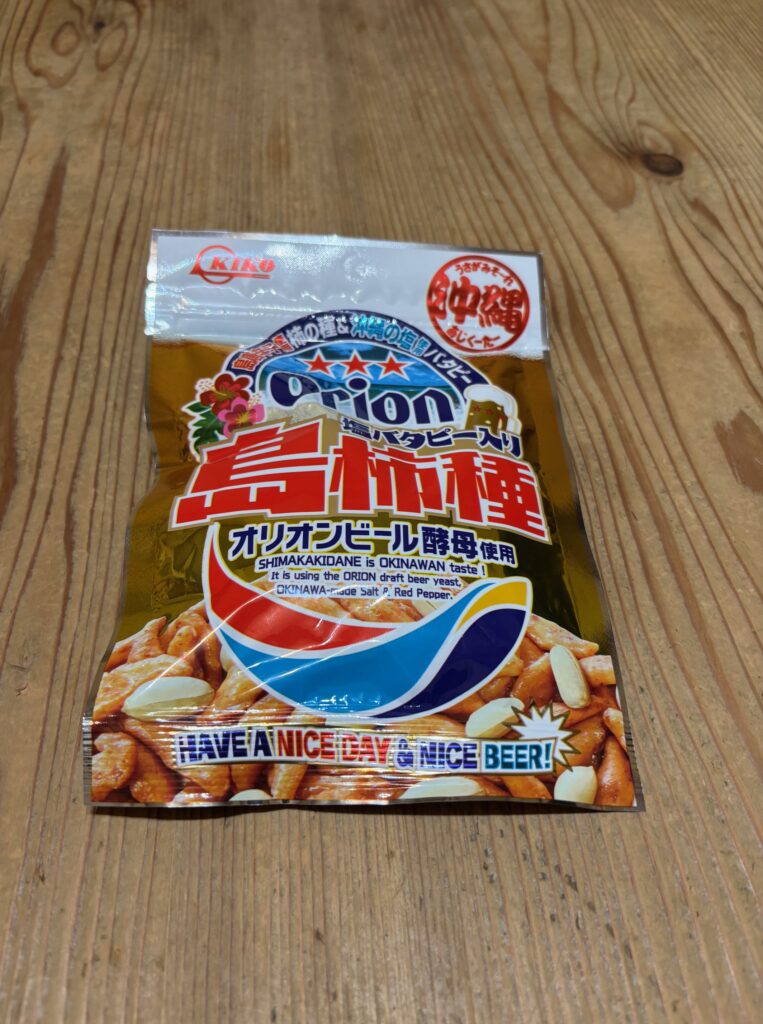 オリオンビール酵母使用の柿ピーはそこそこの辛さ